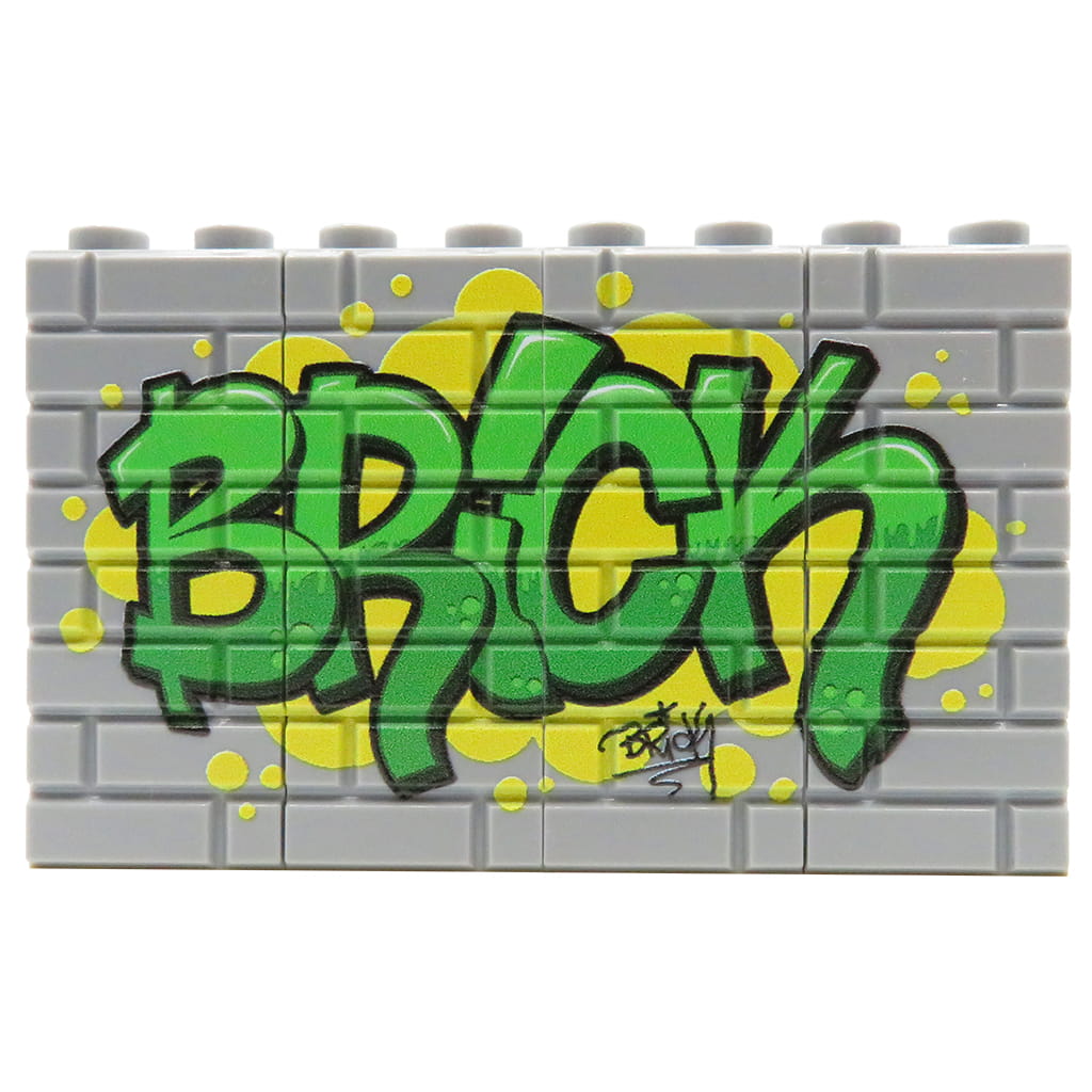 Graffiti "Brick" in green is our original custom print, made on 16 grey 1x2 LEGO® bricks. Designed and printed in our studio using professional UV printing technology. A durable, high-quality custom print that transforms ordinary LEGO® bricks into custom parts. Perfect for fans of personalization, distinctive designs, and creative builds using custom pieces.