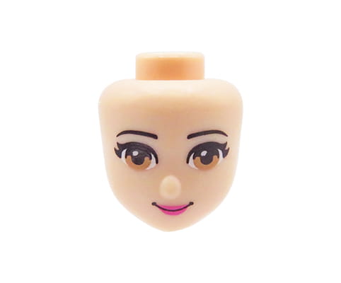 LEGO Friends minifig head - light nougat, brown eyes, pink lips. Head new, comes from an original LEGO set.