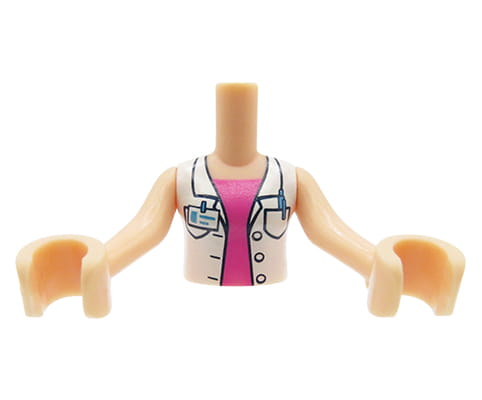 LEGO Friends minifigure torso - white blouse top, pink shirt, light nougat arms. Torso new, comes from an original LEGO set.