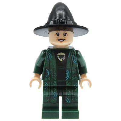 LEGO Harry Potter Minifigure - Professor Minerva McGonagall - black witch / wizard hat, dark green robe, silver necklace. Brand new mini figure, comes from an original LEGO set. Minifig is packed in a zip-lock bag (Please note the product does not include official LEGO packaging).