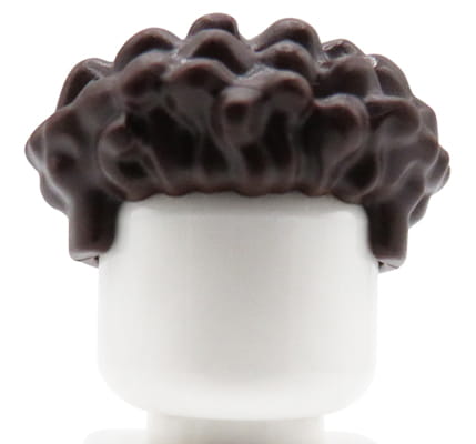 LEGO minifig hair - male, dark brown, curly. Hair new, comes from an original LEGO set.