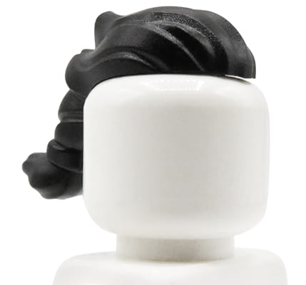 LEGO minifigure hair - black, narrow, swept back with ponytail
