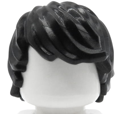LEGO minifig hair - black, tousled, side part. Hair new, comes from an original LEGO set.
