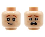 LEGO minifig head - child, light nougat, freckles, dual sided (lopsided grin / scared). Head new, comes from an original LEGO set.