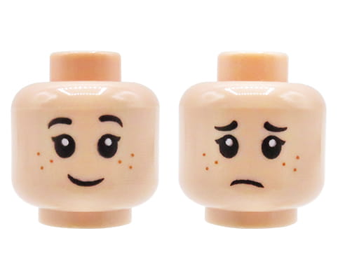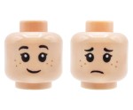 LEGO minifig head - child, light nougat, dual sided (smile / sad), freckles. Head new, comes from an original LEGO set.