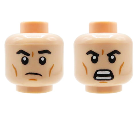 LEGO minifigure head - man, light nougat, angry, dual sided