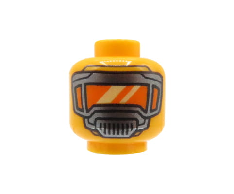 LEGO minifig head - pearl dark gray mask with orange visor. Head new, comes from an original LEGO set.