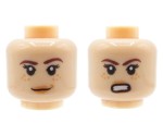 LEGO minifig head - woman, light nougat, freckles, dual sided (slight smile / angry). Head new, comes from an original LEGO set.