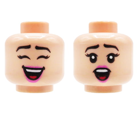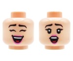 LEGO minifig head - woman, light nougat, dual sided (open smile / surprised). Head new, comes from an original LEGO set.